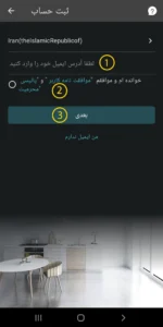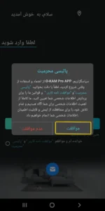 بعد از نصب، نرم افزار را باز کرده و بعد از تایید قوانین و مقررات و موافقت برای دسترسی های لازم حالا میتوانید در نرم افزار ثبت نام کنید. ( تصویر2)