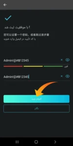 حالا در مرحله آخر ثبت نام باید پسوردی که ترکیبی از حروف و عدد باشد انتخاب کنید توجه داشته باشد کلمه اول باید بزرگ تایپ بشه ( تصویر 6)
