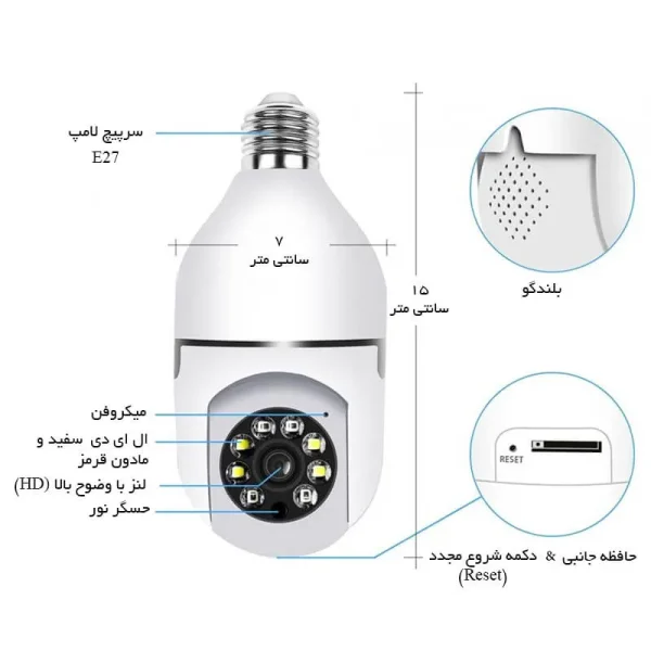 این دوربین بیسیم از وای فای 2.4G پشتیبانی میکند. برای مشاهده فیلم از راه دور، باید دوربین را به روتر 2.4G متصل کنید. از محاسن این دوربین آن است که میتوان آن را با استفاده از پایه لامپ معمولی (E27) در محل دلخواه نصب کرد. دیگر هیچ مرحله اضافی برای نصب وجود ندارد.